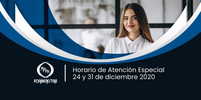 Informamos a todos nuestros Asociados de Fonbienestar que con motivo de las fiestas decembrinas y de fin de año, los días 24 y 31 de diciembre, nos encontraremos laborando en horario especial; el cual se detallará a continuación: Ver Comunicado